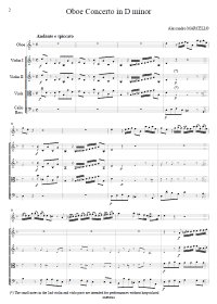This edition of Marcello's Oboe Concerto incorporates in the slow movement Bach's melodic line has it appears in his arrangement for cembalo (BWV 974). Moreover, the first ans third movement contain optional small notes in the 2nd violin and viola parts, intended for performances without harpsichord.